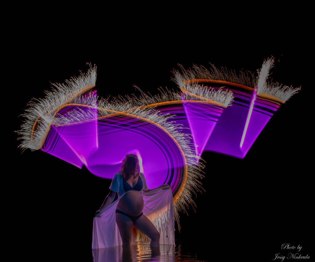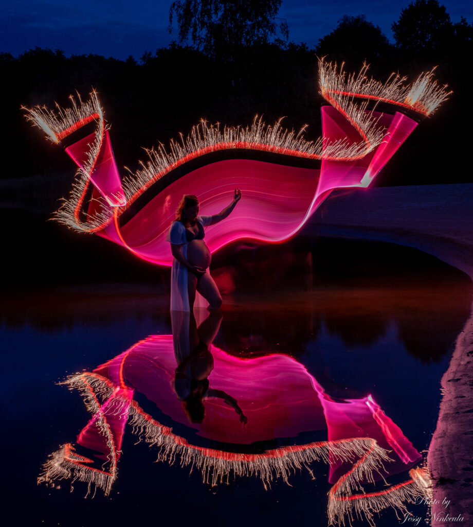 Lightpainting is een kunstvorm op zichzelf en biedt een geweldige manier om je zwangerschapsshoot een extra vleugje magie te geven. Een lightpainting fotoshoot is een heel bijzonder en mijn specialiteit! Lightpainting fotografie is waar ik het liefst mee bezig ben, mijn passie voor deze speciale manier van fotograferen deel ik graag tijdens een fotoshoot.